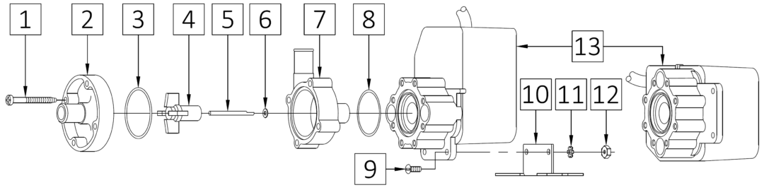 - Wet End: Polypropylene (Front Housing, Rear Housing, Impeller), Buna N (O-Ring), Carbon/Teflon (Thrust Washer), 316 Stainless Steel (Shaft)