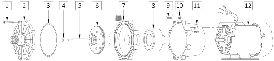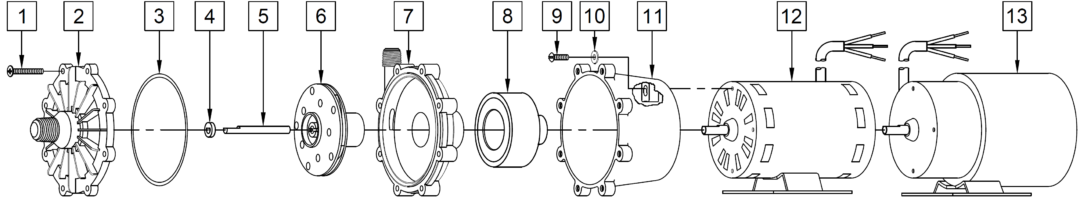 - Wet End: Polypropylene (Front and Rear Housing, Impeller), Viton (O-Ring), Ceramic (Shaft and Thrust Washer)