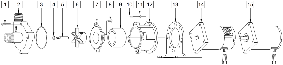 - Wet End: Bronze (Front Housing), Stainless Steel (Rear Housing, Shaft), Teflon (Thrust Washer), Silicone (O-Ring), Ryton/Teflon/Glass (Impeller)