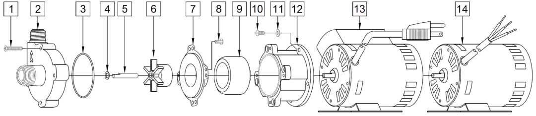 - Wet End: Polysulfone (Front Housing), Stainless Steel (Rear Housing, Shaft), Teflon (Thrust Washer), Silicone (O-Ring), Ryton/Teflon/Glass (Impeller)
