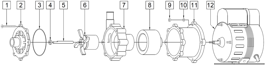 - Wet End: Polypropylene (Front and Rear Housing, Impeller), Buna N (O-Ring), Ceramic (Shaft, Thrust Washers), Ceramic Magnet