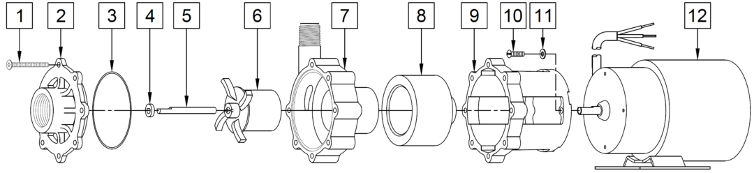 - Wet End: Kynar (Front and Rear Housing, Impeller), Ceramic (Shaft, Thrust Washers), Viton (O-Ring)