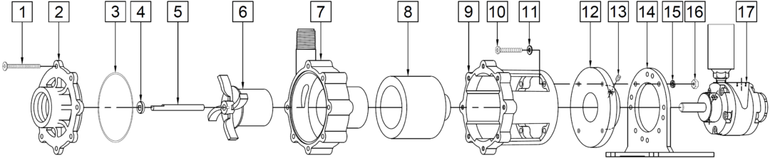 - Wet End: Glass Filled Kynar (Front and Rear Housing, Impeller), Viton (O-Ring), Ceramic (Shaft, Thrust Washers)