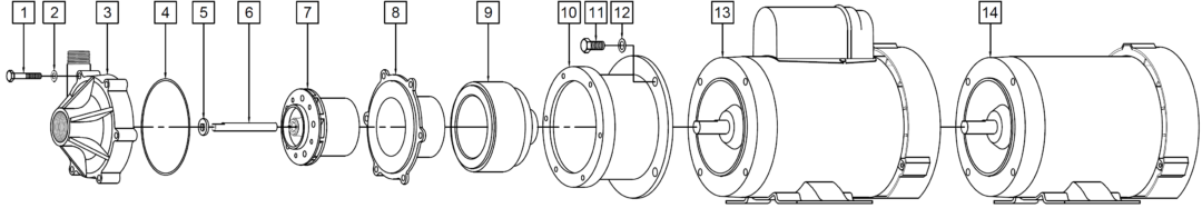 - Wet End: Polypropylene (Impeller, Front Housing, Rear Housing), Viton (O-Ring), Ceramic (Shaft, Thrust Washers), Ryton/Teflon/Carbon (Bushing)