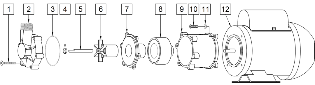 - Wet End: Ryton (Front and Rear Housing, Impeller), Ceramic (Shaft, Thrust Washer), Viton (O-Ring)