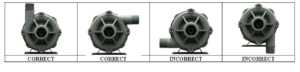 Always ensure that the outlet port is higher than the inlet port. This allows a path for the air to escape through. If the outlet is not higher than air can build up and may cause problems within the system. See figures for examples of correct and incorrect set up.
