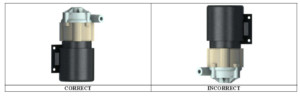 The pump should never be mounted vertically with the pump head at the lowest point. This will create an air pocket within the pump chamber and may cause problems.